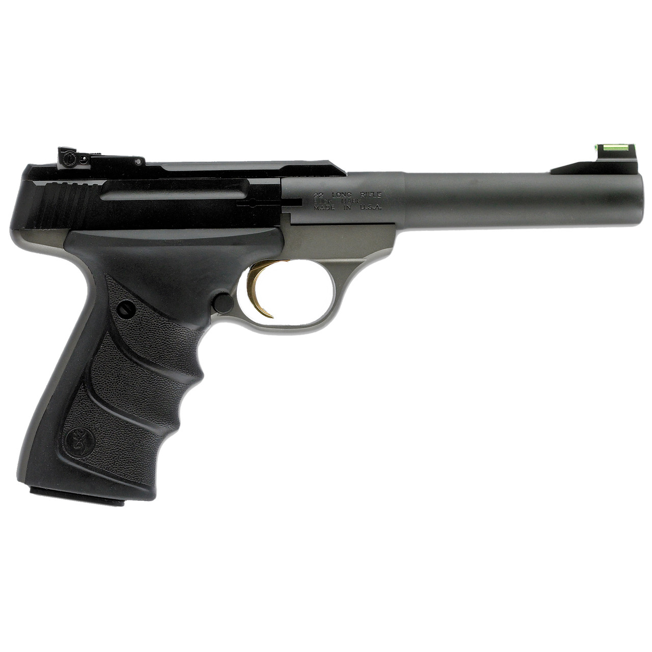 Browning’s Buck Mark rimfire pistol leads the industry in quality, reliability, accuracy and variety. It is constructed of a solid piece of aircraft-grade 7075 aluminum alloy, and then CNC machined to exacting tolerances. The crisp single-action trigger, hand reamed chamber, target crowned barrel and finely adjustable target sights mean the Buck Mark comes ready for fun straight from the box. Its slide features built-in recess and raised side panels for better grip along with a manual slide release. The Buck Mark utilizes a Pro-Target rear sight and a manual thumb safety.