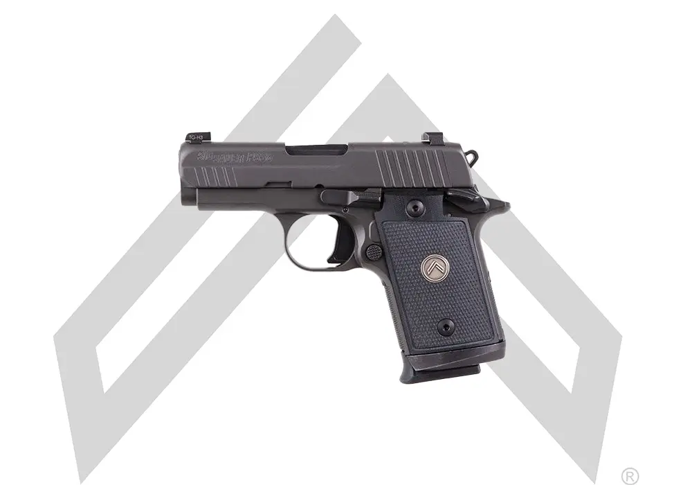 The LEGION P938 features the distinctive LEGION Gray finish in Cerakote Elite. The P938 Legion includes a precision machined aluminum trigger and aggressive trigger guard checkering along with an ambidextrous thumb safety allowing for easy manipulation and accuracy. The slide features front cocking serrations and X-RAY3 Day/Night sights. The grips are Legion Black G-10 grips with an embedded Legion medallion. The P938 Legion comes with an extended magwell ready to accept magazines for faster reloads. This MA compliant model has a 10-round capacity.