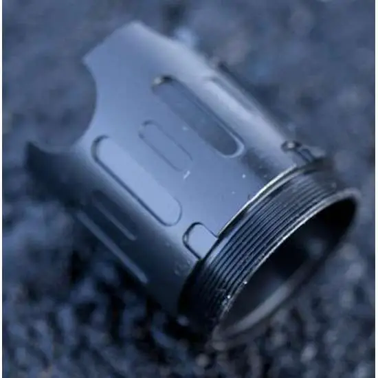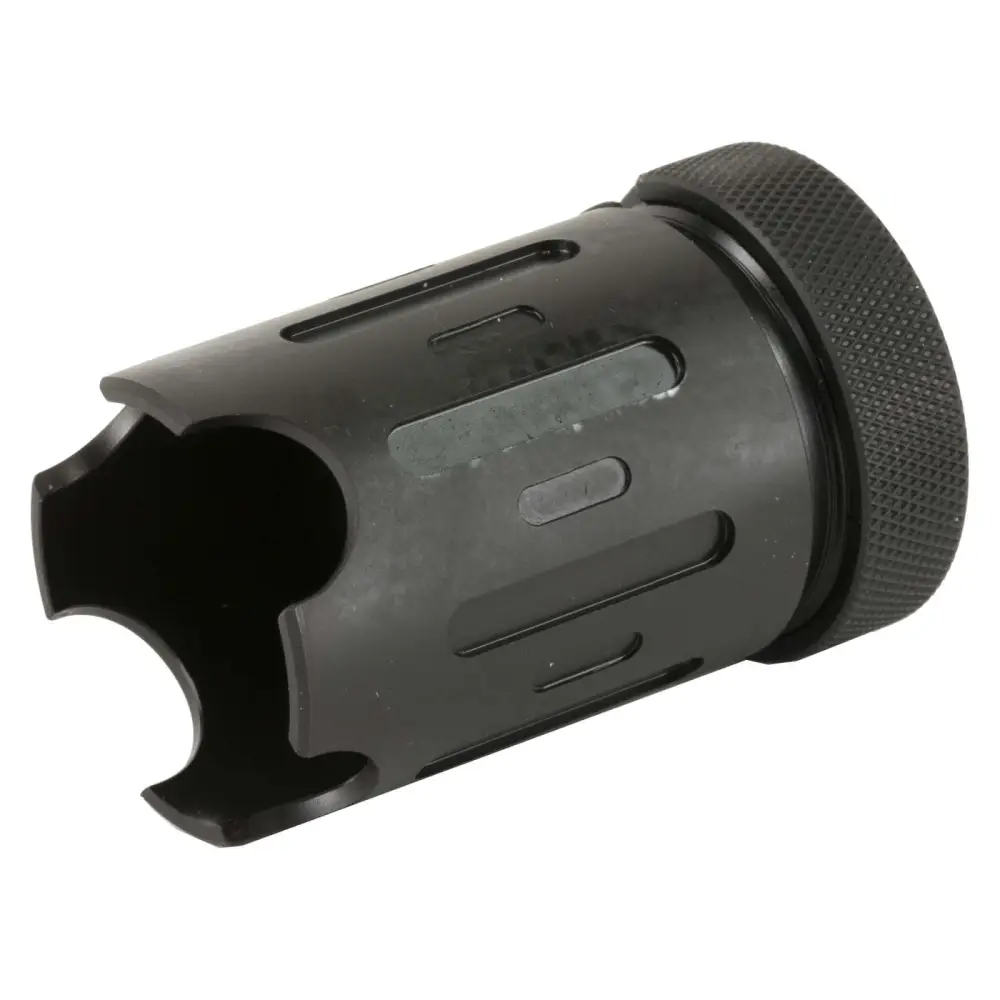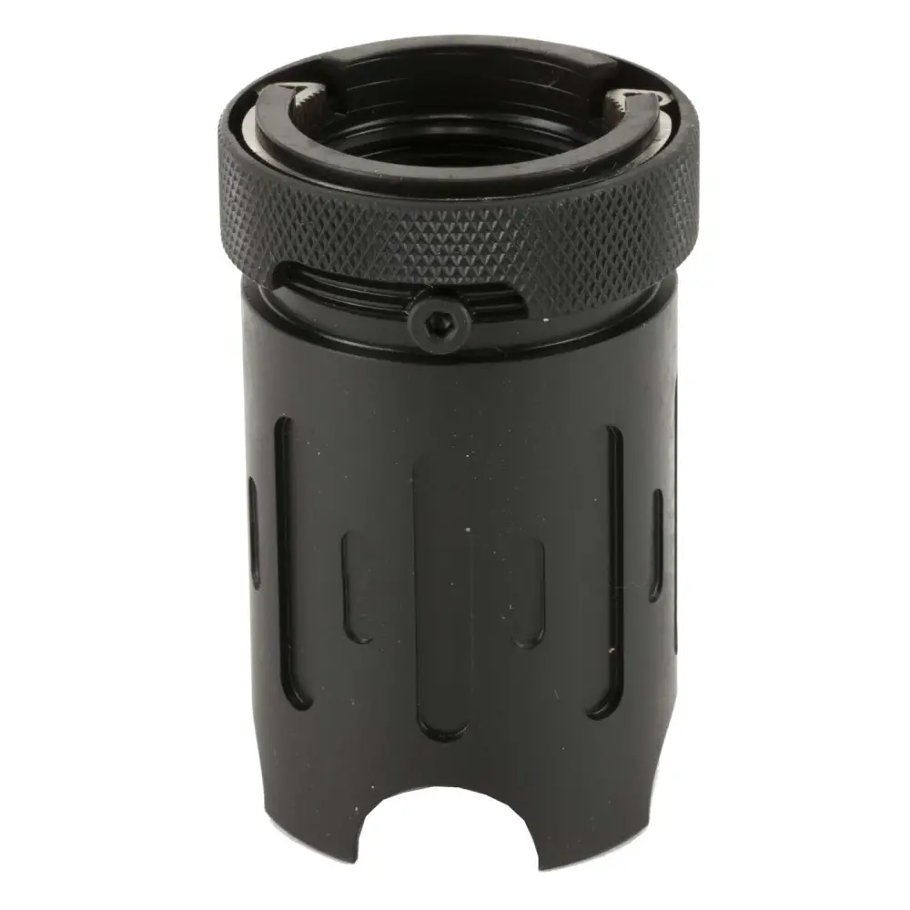 The SilencerCo Blast Shield is constructed of steel with a black finish. The SilencerCo ASR Blast Shield attaches to any existing ASR Muzzle Device including the Single Port ASR Muzzle Brake. The ASR Blast Shield reduces muzzle blast and concussion, and requires an ASR Muzzle Device to mount to the host firearm.