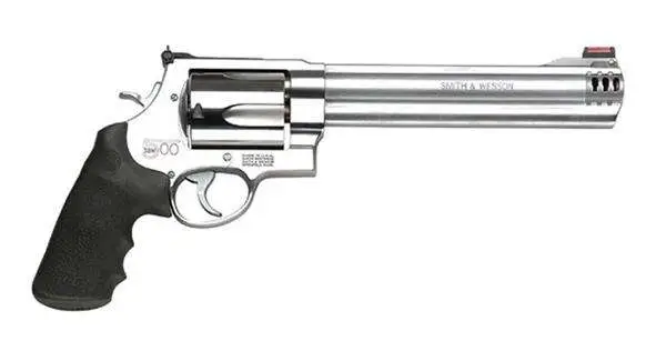 Smith & Wesson Model 500 delivers maximum power for serious handgun hunters. The massive X-Frame is basis for the Model 500, and is ideal in ultimate power and velocity. It has a removable high efficiency compensator and HIVIZ red dot interchangeable front sight.
